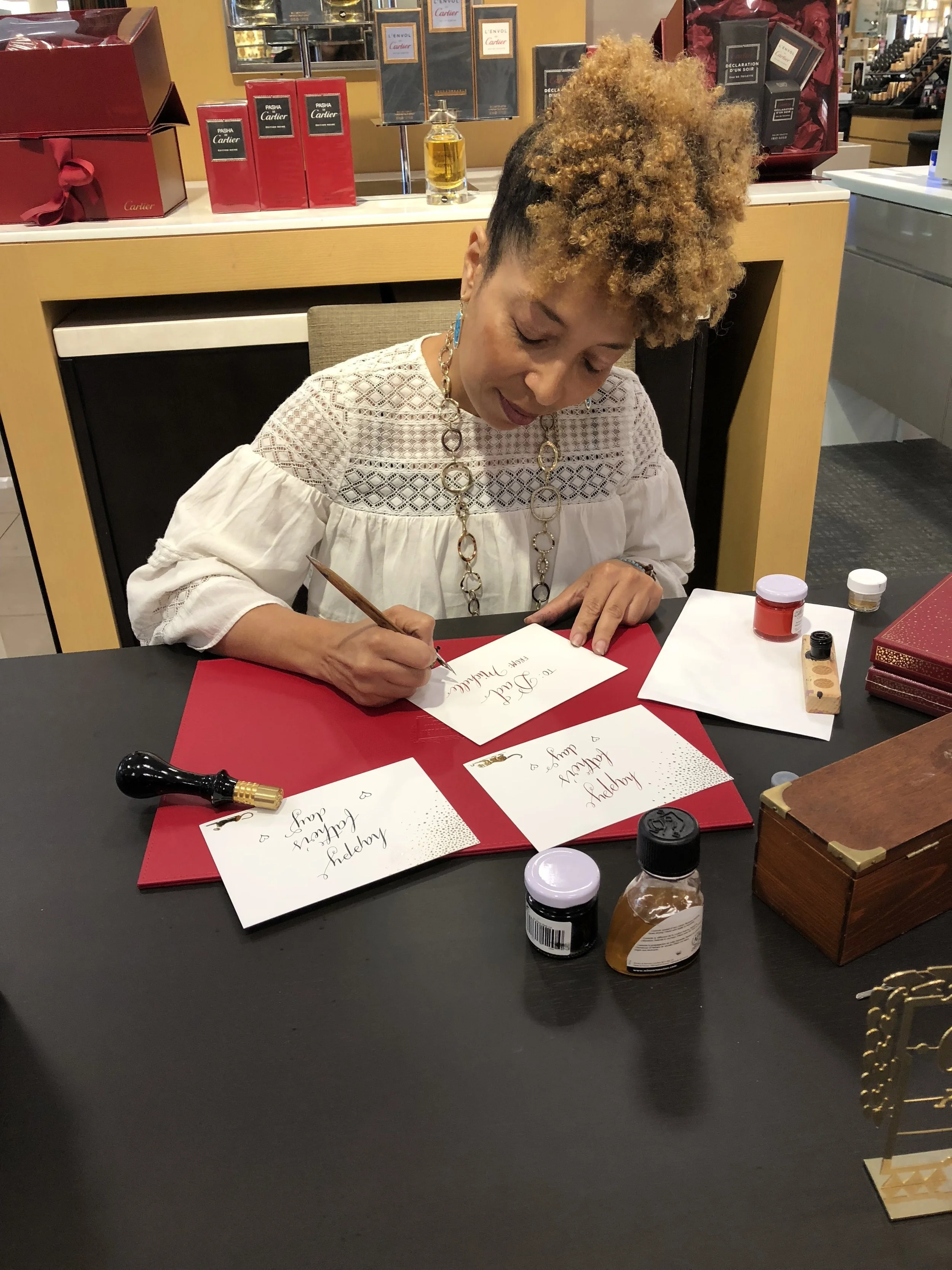 I am looking forward to engraving at on site special events using my calligraphy and hand lettering skills. There are endless possibilities to let your creative juices flow and make beautiful pieces of art! Below is a picture of a bottle of Versace cologne that I engraved in calligraphy.